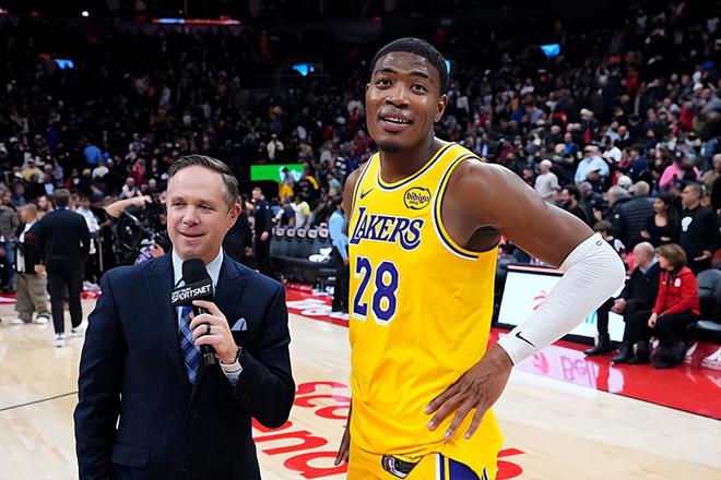 本场比赛中,湖人的先发锋线大将八村塁虽然整体表现一般,但是还是通过自己的绝杀为球队的胜利做出了巨大的贡献。八村塁全场出场34分57秒,投篮9中4,三分线外3中2,罚球2中2,得到了12分3篮板1抢断的数据,还有1次失误和2次犯规,正负值为+4。八村塁的整体表现并不出彩,他并没有得到太多的出手机会,他的进攻效率也是马马虎虎的水平,他并没有将自己的得分能力和投射能力完全发挥出来。八村塁的防守能力本来就比较一般,指望他在防守端起到更大的作用也并不是一件容易的事情。不过毕竟八村塁是本赛季联盟最优秀的投手之一,他在关键时刻也是顶住了压力命中了绝杀球,这也证明了他在场上对于球队的意义和价值有多大。