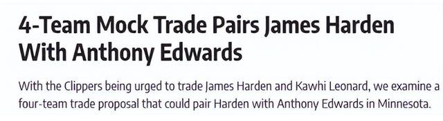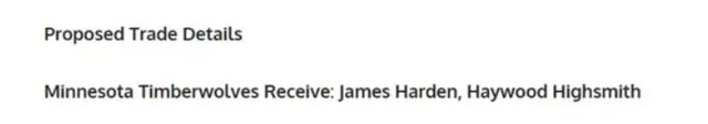 森林狼得到:哈登、海史密斯;