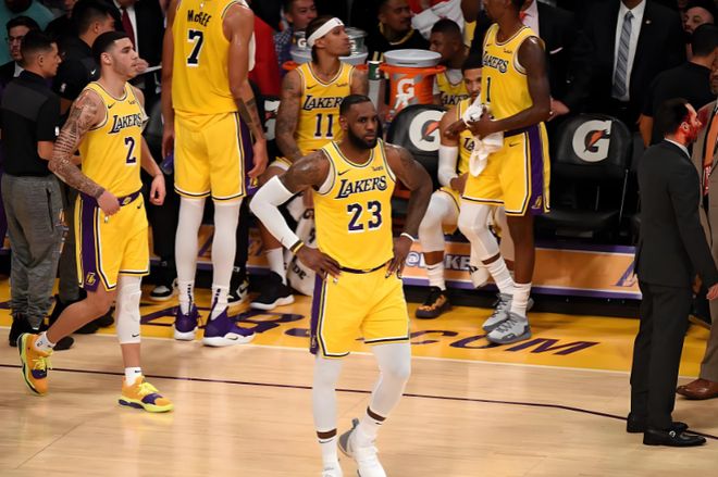 而在核心球员的高负荷出战下,湖人防守效率位居联盟第17,进攻效率则是联盟第9。进攻还能够支持他们在常规赛打出成绩,但中下水平的防守效率,想争冠就远远不够了。