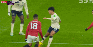 第58分钟,卡塞米罗打门被挡,达洛特得球补射入网!曼联1-0西汉姆联