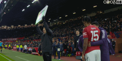 第37分钟,迪乌夫对阿马德连拉带踢,裁判向其出示黄牌