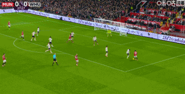 上半场曼联创造了几次好机会。首先是姆贝莫的吊射,他在右路出人意料地弧线球直接攻门,可惜西汉姆门将阿雷奥拉飞身救险。