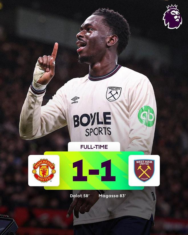 此前21次全败,西汉姆英超客战曼联先丢球的情况下首次拿分