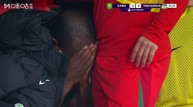 尽管经历了上半场的45分钟,河南队下半场心态上的紧张焦急并没有缓解多少,球队前场三名外援阿奇姆彭、卡多索、纳萨里奥串联不多。第77分钟,拉莫斯将阿奇姆彭换下场,阿奇姆彭对此似乎有些不满,在回到替补席后队友赶忙安慰他。